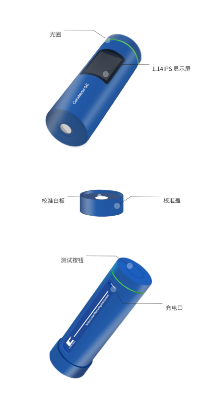 色差寶ColorMeter SE 色差寶ColorMeter SE是色差寶系列的基礎(chǔ)款儀器 ,能滿足基本的顏色檢測(cè)需求,但是又不同于傳統(tǒng)色差儀。它體積小巧,采用D/8分光測(cè)色儀的結(jié)構(gòu),使用更方便;與安卓或