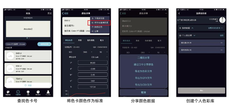 ? 用戶可以創(chuàng)建個(gè)人色彩數(shù)據(jù)庫,錄入印刷、涂料、紡織等色卡信息,創(chuàng)建的色彩庫可上傳至云端,多設(shè)備數(shù)據(jù)共享。