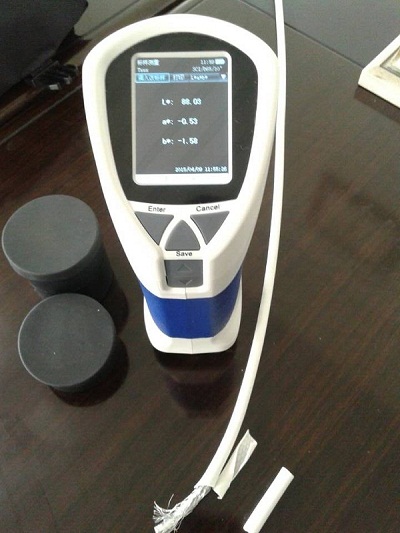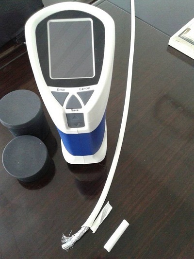 該公司決定采用杭州彩譜科技的精密色差儀CS-210(如圖2)來判別電纜的顏色和同一根電纜顏色上不同部分的色差,從而提高產(chǎn)品質(zhì)量,為客戶提供更高質(zhì)量的電纜。杭州彩譜科技的CS-210具有高精度測(cè)量,性能穩(wěn)定等特點(diǎn),能實(shí)現(xiàn)黃、白度測(cè)試,能多點(diǎn)測(cè)試取平均值,適合企業(yè)內(nèi)、外部色彩評(píng)價(jià)和數(shù)據(jù)管控。