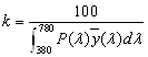 其中P(λ)是光源輻射的相對光譜功率分布,