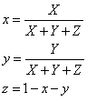 在獲得顏色的三刺激值后,可以按下式計算出該顏色在CIE1931色度系統(tǒng)中的色品坐標。