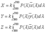 ,其中稱X、Y、Z為該顏色的三刺激值。根據(jù)CIE的規(guī)定,三刺激值可由下面的公式計算得到。